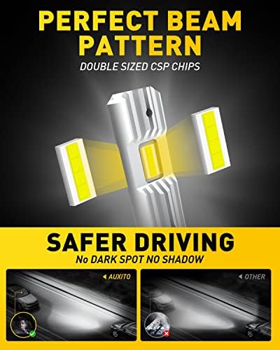 [Huge Improvement in Visibility]: AUXITO H1 bulbs are equipped with latest CSP chips, provide 5 time brighter than stock halogen bulbs. Get rid of yellow dull bulbs, you could foresee the danger of the road and get a wider and clearer field of vision, ensuring safer nighttime driving.