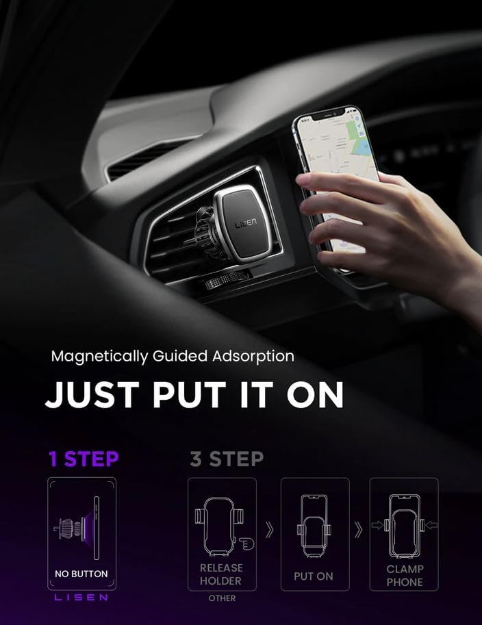 LISEN Fits MagSafe Car Mount Upgrade 18 Magnets Fit iPhone 15 Plus Pro Max Car