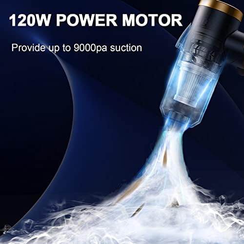 120W Power Motor: Saimour Car Vacuum Cordless utilizes a 120W high power motor. It can provide up to 9000pa suction, which can easily clean dust, pet hair, sand, food residue, little liquids, debris hidden in car seat or sofa.