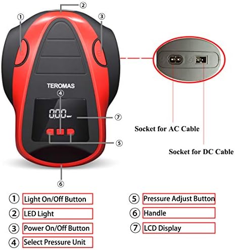 DIGITAL DISPLAY & LED Lighting: Bright backlight LCD display makes for convenient use at night. As well as being bright enough to see under strong sunlight, The air compressor gauge can display the pressure in PSI, BAR & KG/CM². TEROMAS air pump is equipped with bright and long-lasting LED lights, easy to use even in the dark.